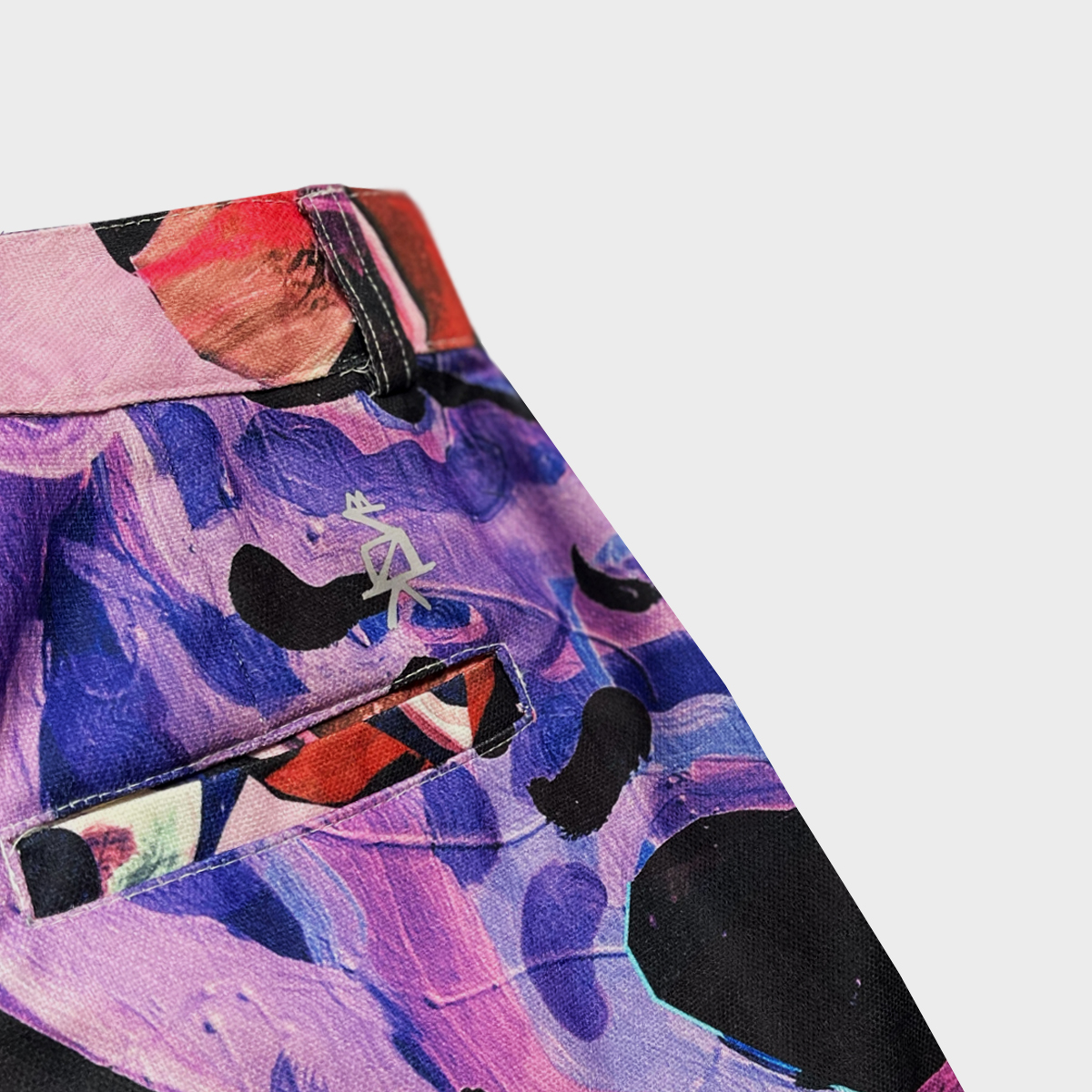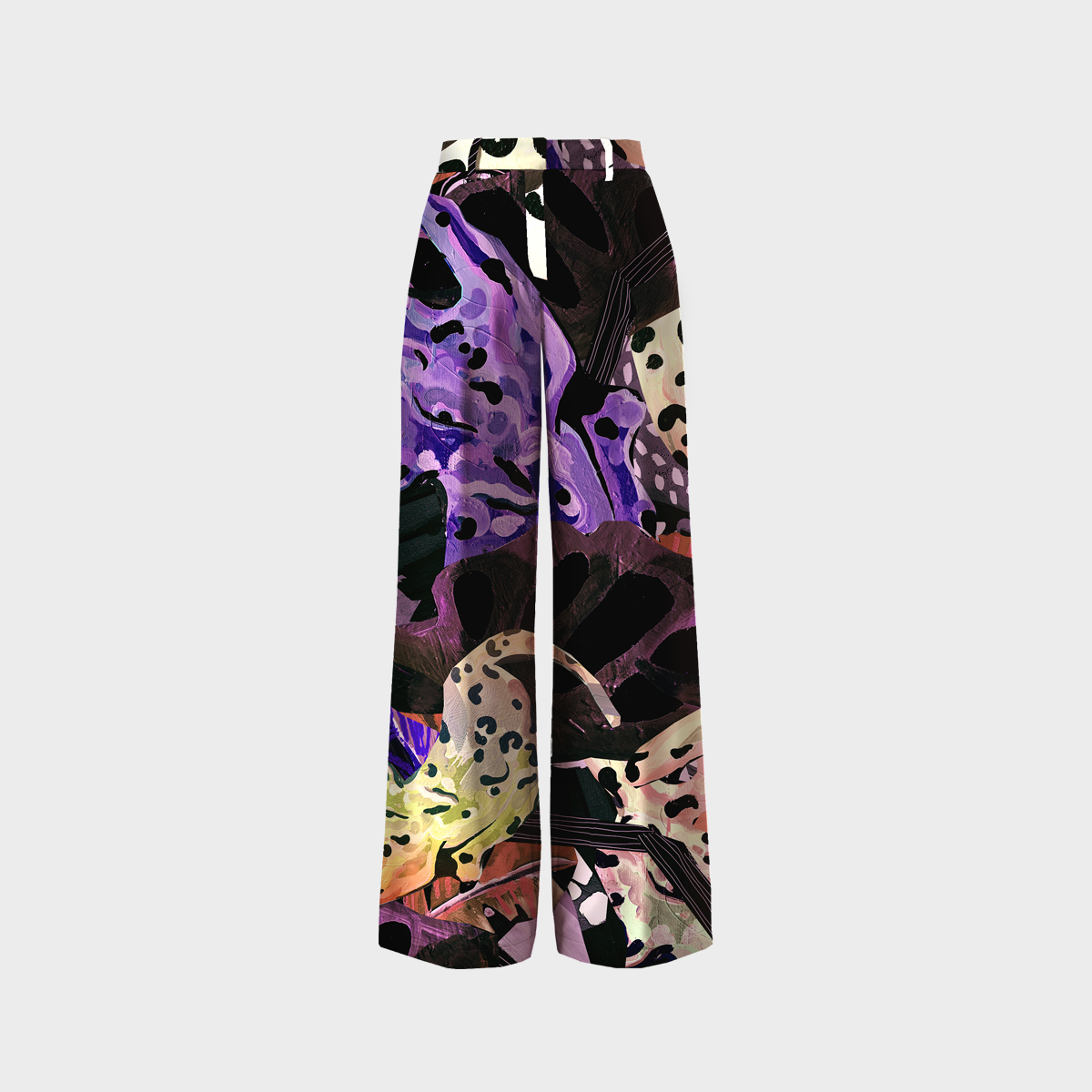 Atrévete a llevar el ritmo visual del caos hermoso. El pantalón MARIE Malabarista de MNZK es una danza de formas orgánicas, manchas abstractas y paletas inesperadas: morados intensos, verdes ácidos y destellos negros se entrelazan como si una pintura cobrara vida.